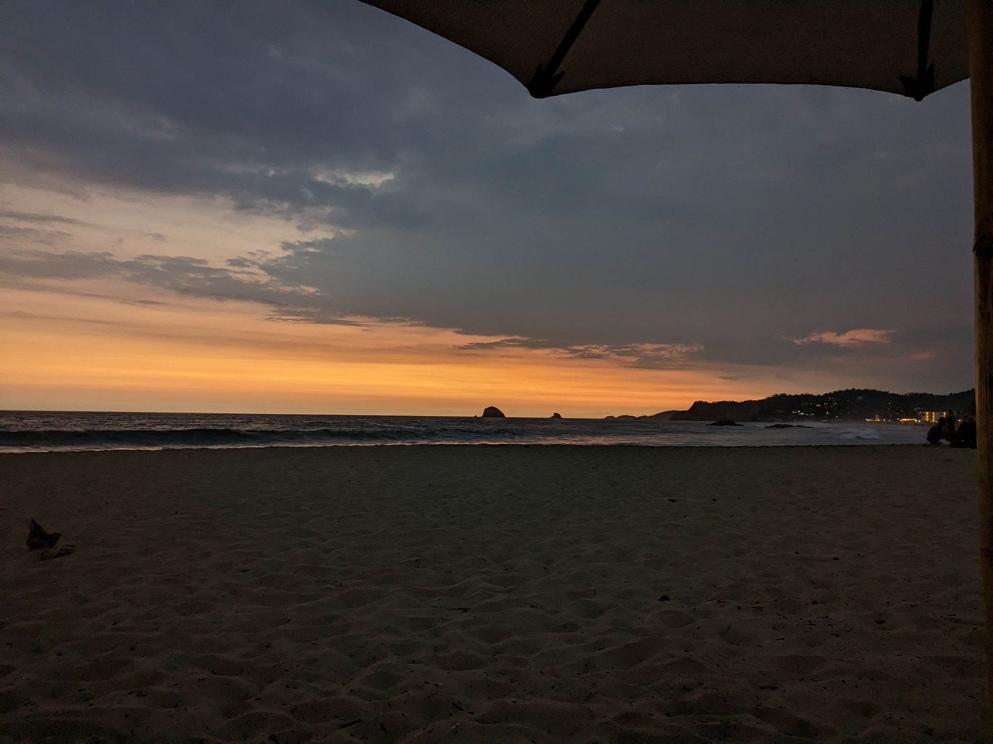 We watched another beautiful sunset, and continued to appreciate the beach, swimming for a while longer, and then returning to the chairs, and saying our goodbyes to the day light. The restaurant actually ended up having a small bungalow-cottage-type room for only 500 pesos, so I had made the decision to stay the night in Zipolite. I ended up departing from everyone and walking the length of the beach, which was maybe around a kilometer or so, and then I walked back toward my place, down the roads of the town, observing the night life, with some clubs and bars starting up, as well as many vendors along the streets, selling various stones, leather work, and other trinkets. Some of the vendors actually did have pretty awesome, unique art, but many of them also seemed to have very similar products from one stand to the next, as if they all bought them somewhere for very cheap and then mark them up here on the streets.